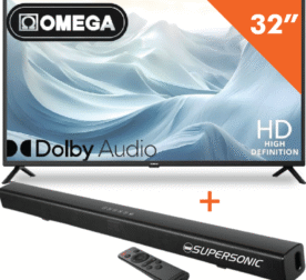 Omega 32″ Smart Android TV + Supersonic 80W Bluetooth Soundbar Combo