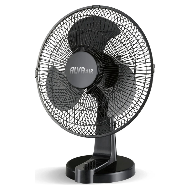 The ALVA AIR 40 cm Plastic Desk Fan is designed for reliable personal cooling with a sleek black finish. Featuring three fan speeds, oscillation, and tilt adjustment, this desk fan delivers efficient airflow in a compact, lightweight design—perfect for home or office use.