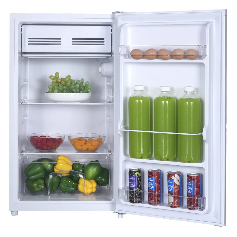 Compact 90L bar fridge with A energy efficiency, designed for everyday drink and snack storage in small spaces.