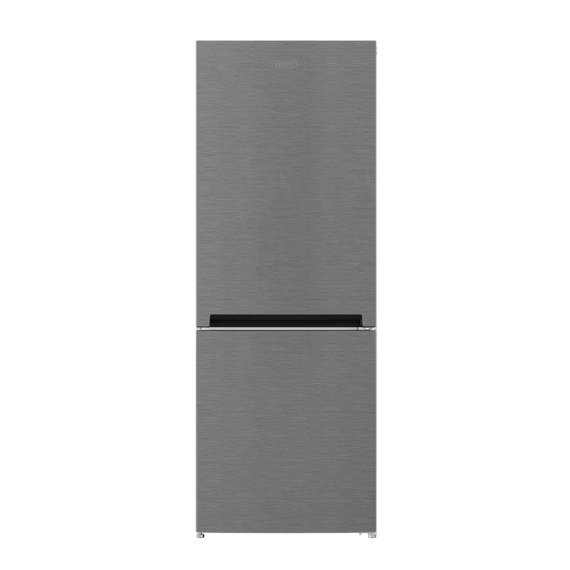 Defy DAC625 60cm Fridge/Freezer with satin metallic finish. Compact, stylish, and built for everyday cooling.