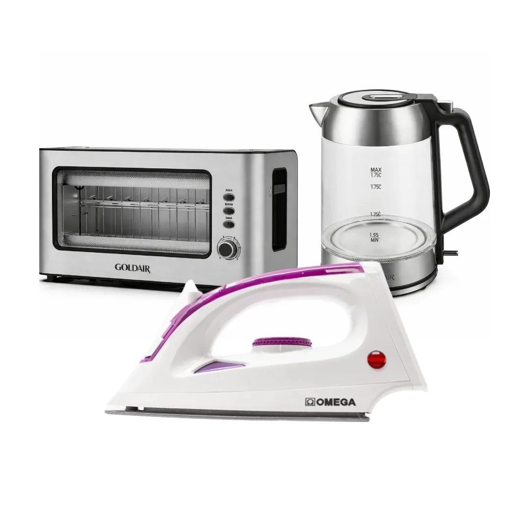 Home » Shop » Goldair and Omega Starter Pack with Kettle Mini Oven and Iron