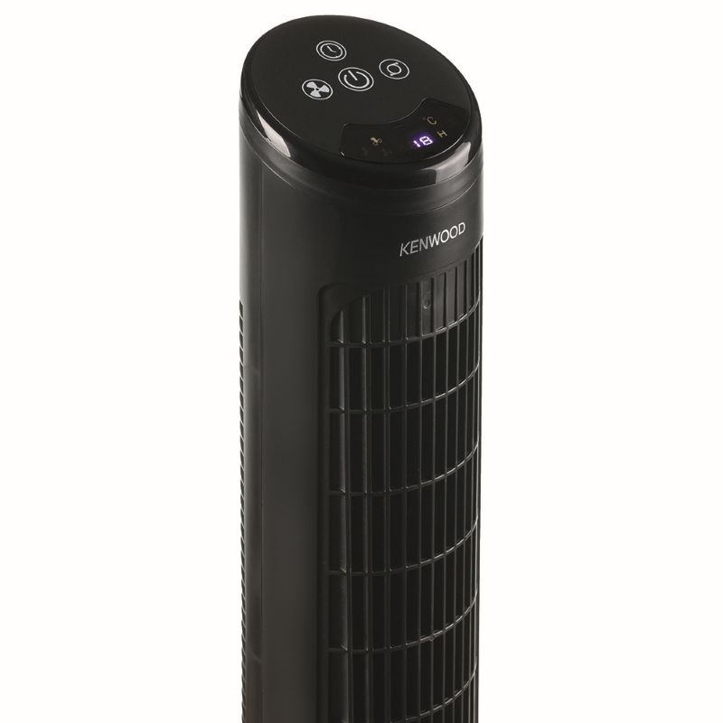 Slimline Kenwood Tower Fan with remote control, 3 speeds, and 180° oscillation – perfect for stylish, efficient cooling.