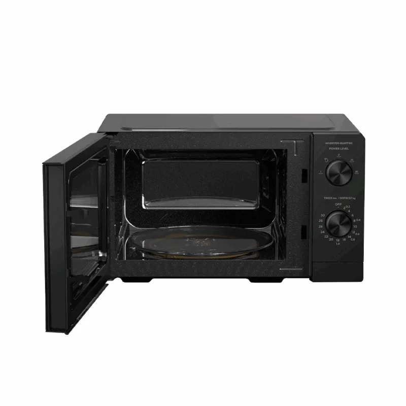Compact 20L manual inverter microwave in sleek black – reliable, stylish, and easy to use.