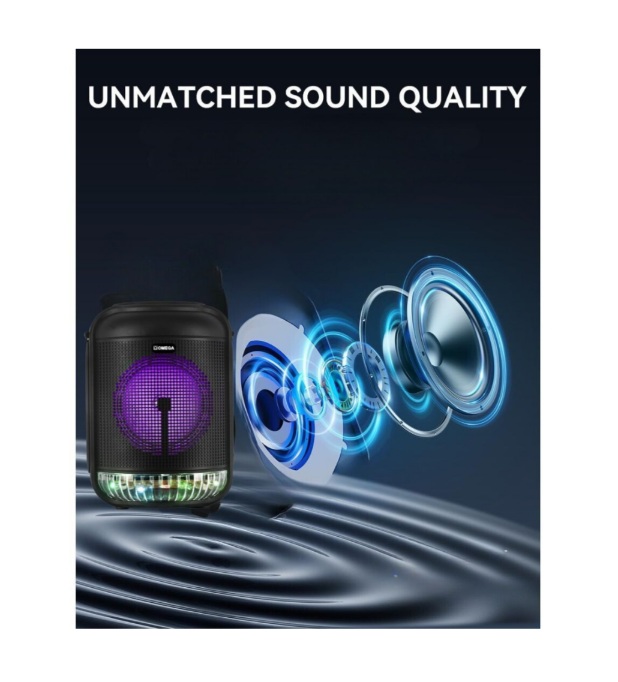 Powerful 8″ Omega Bluetooth karaoke speaker with 80W battery, perfect for loadshedding, parties & events.