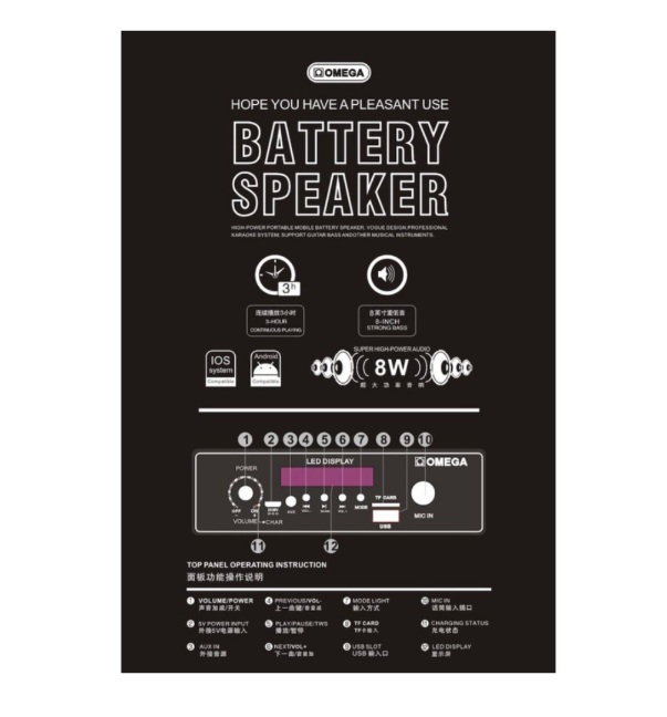 1 x Omega OP-82507 Portable Bluetooth Karaoke Speaker