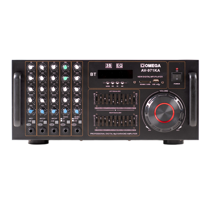 Bluetooth karaoke amplifier with USB/SD playback — Omega AV-971KA offers flexible input and reliable sound.