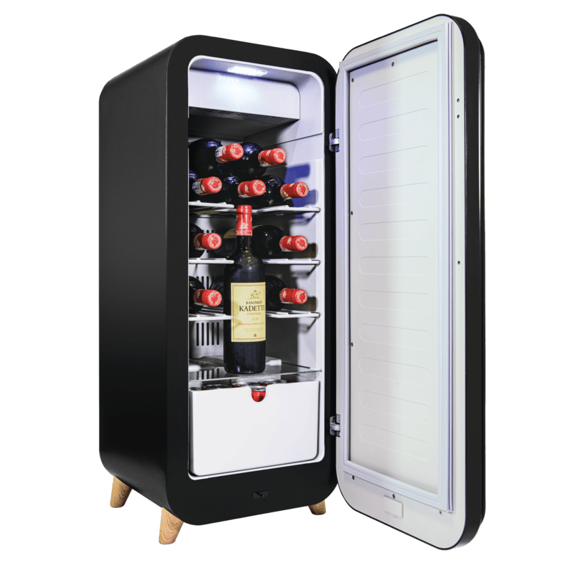 SnoMaster -14 Bottle Solid Door Single Zone Retro Wine Cooler -Black (VT-19DBPRO)