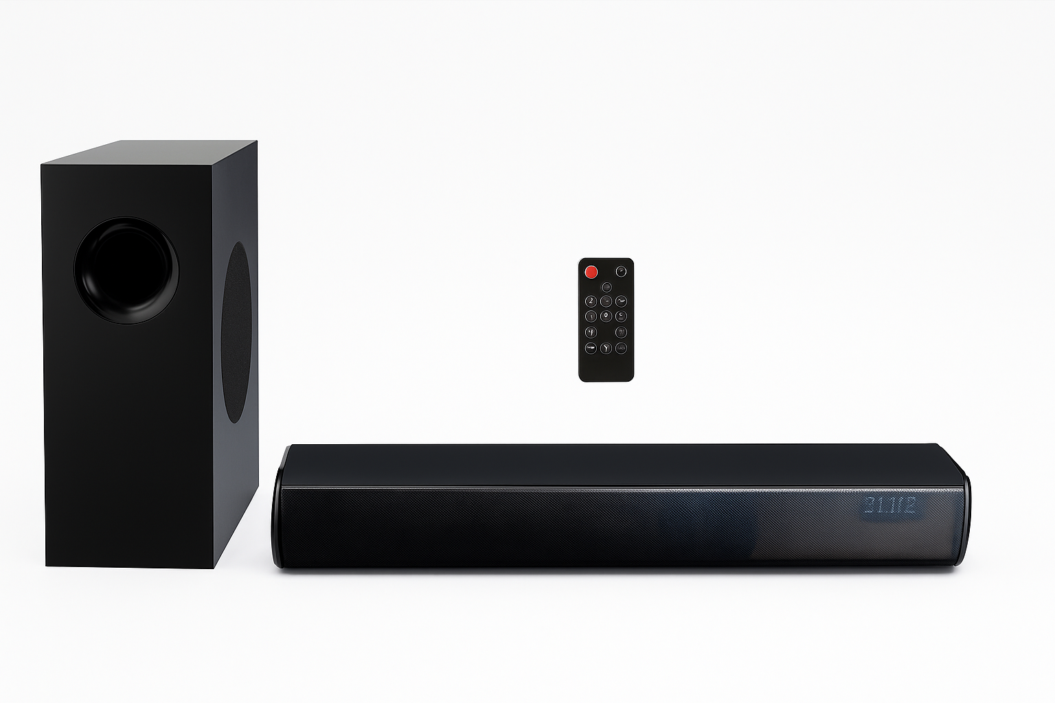 Upgrade your home audio with the Telefunken 2.1 Channel Wireless Soundbar and Subwoofer (Model TSBW-825). Enjoy powerful 40W output, clear dialogue, and deep bass for movies, music, and gaming. Connect easily via HDMI, USB, AUX, and Optical inputs. The wireless subwoofer brings rich, room-filling sound and keeps your space clutter-free.