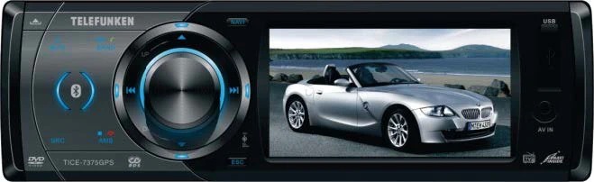 3.5″ car stereo with built-in TV, USB/SD/AV-In, GPS, Bluetooth, and detachable front panel.