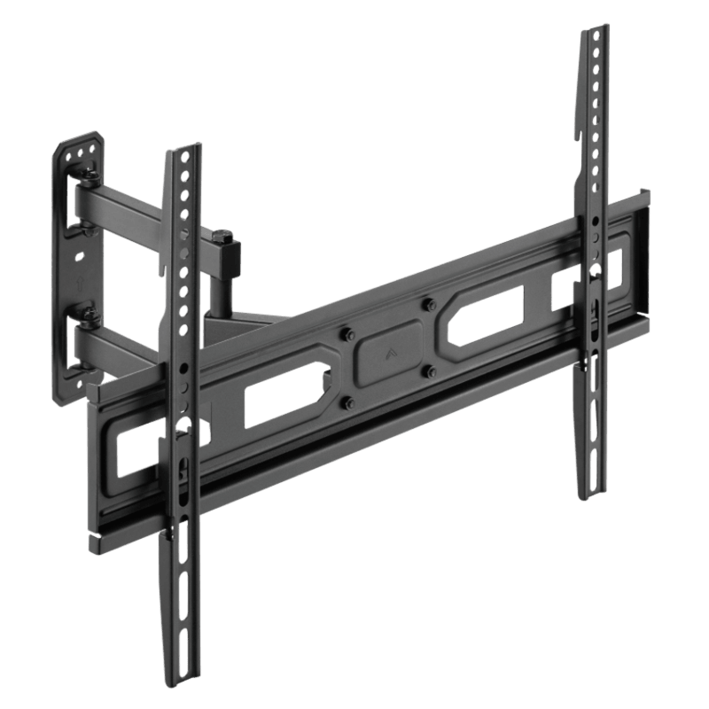 Full motion wall mount for 37”–86” TVs with swivel, tilt, and strong dual-arm steel construction.